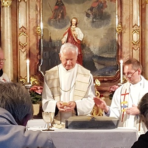 Da der neue Pfarrer am 27.März seinen 50sten Geburtstag gefeiert hatte, gratulierte man ihm und hieß ihn mit einem Glas guten Weins willkommen.