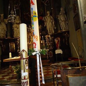 Vom Dunkel zum Licht, vom Tod zur Auferstehung, das war der Inhalt der Osternachtsfeier am Karsamstag um 20 Uhr in der Pfarrkirche. Die Feier der Osternacht, der wichtigsten des Kirchenjahres, begann mit der Entzündung der Osterkerze vor der Kirche. Diese symbolisiert den Übergang vom Dunkel zum Licht. Der traditionelle Ostergruß lautet: "Christus ist auferstanden - er ist wahrhaft auferstanden! Halleluja!"